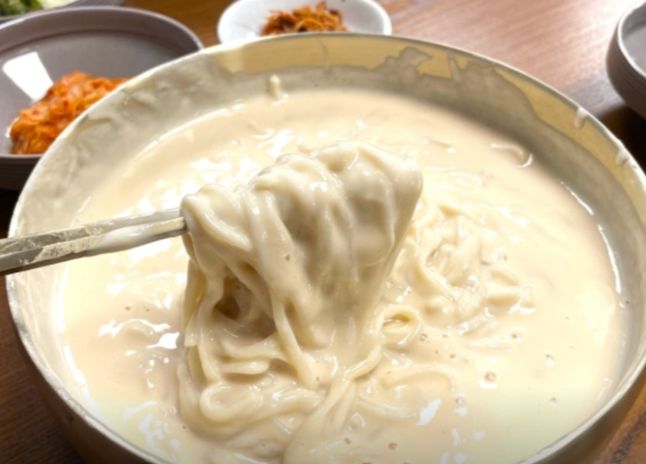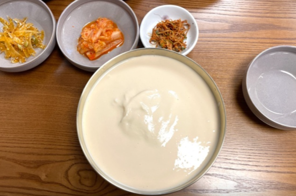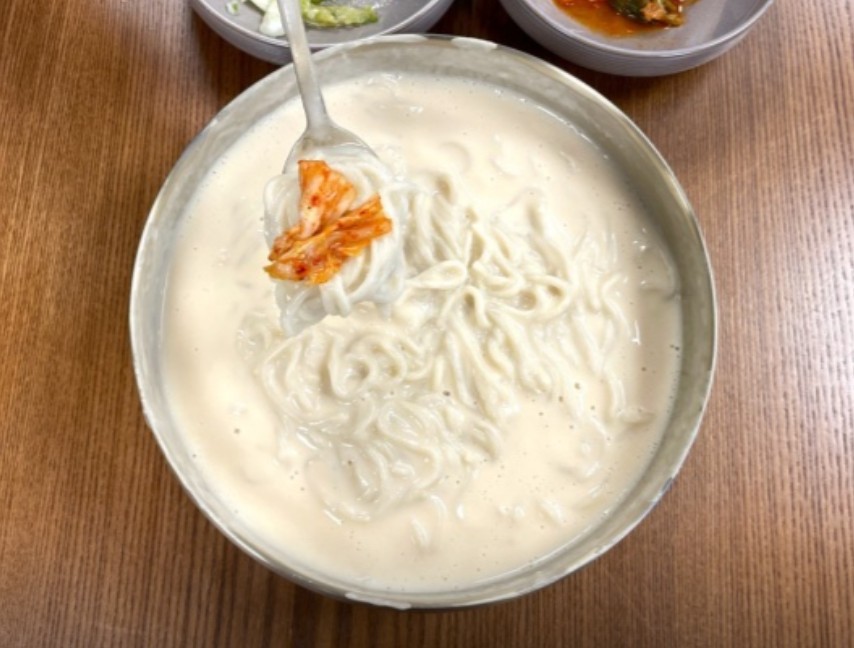 신안 토판염으로 간을 맞춘 반죽은, 반죽기에서 1차로 뭉친 후 손으로 한 번 더 치대어 찰기를 더하고, 발로 한 번 더 밟아 탄성을 더해줍니다. 100% 청양군 백태를 사용하여 만든 콩물은, 콩을 오래 불리지 않고 바로 삶아 담백한 맛을 유지합니다. 6시간 동안 섬세한 불 조절로 삶은 콩을 현대식 맷돌 기계에 곱게 갈아 크림처럼 부드러운 콩물이 완성됩니다. 매일 담그는 양배추겉절이를 곁들이면 시원함이 배가 되어 다가오는 여름 더위도 문제없습니다.
