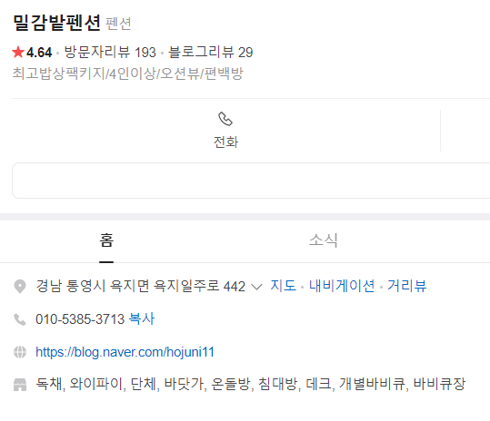 경상남도 통영시 욕지면 욕지일주로 442에 자리한 밀감밭펜션은 욕지도의 아름다움을 한껏 느낄 수 있는 숙박지입니다. 이 펜션은 이름 그대로 주변에 밀감밭이 있어 자연 속에서 휴식을 취할 수 있으며, 정성껏 준비된 식사와 함께 쾌적한 숙박 환경을 제공합니다.